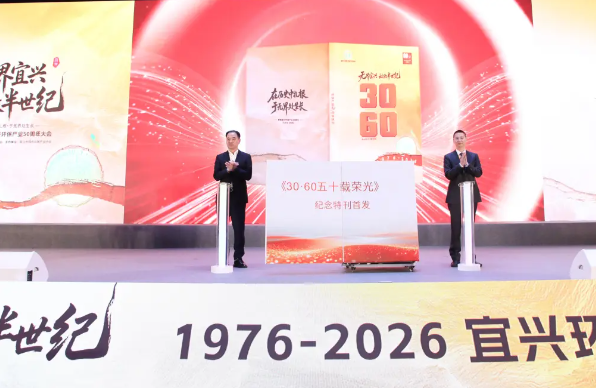 五十年深耕环保沃土,新起点绘就绿色未来。3月1日 ,由中国环境保护产业协会指导,宜兴市绿色低碳产业协会主办的无界宜兴·致敬半世纪——1976-2026宜兴环保产业50周年大会举行。联合国前副秘书长、国际绿色经济协会名誉会长沙祖康,南京大学教授任洪强,南京林业大学党委副书记、校长、教授勇强,中国环境保护产业协会副会长苏克敬等嘉宾齐聚一堂,谋产业之远,话发展之道,共同回顾半个世纪的产业发展历程,携手续写宜兴环保的崭新时代篇章。我市领导胡小坚、张毅、周雪强参加活动。